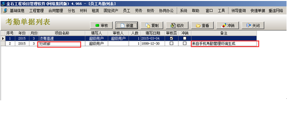 考勤單據(jù)生成之后可進(jìn)入到系統(tǒng)中查看到來自“手機(jī)考勤終端”生成的考勤單據(jù),如圖: