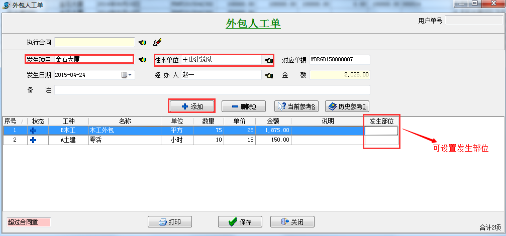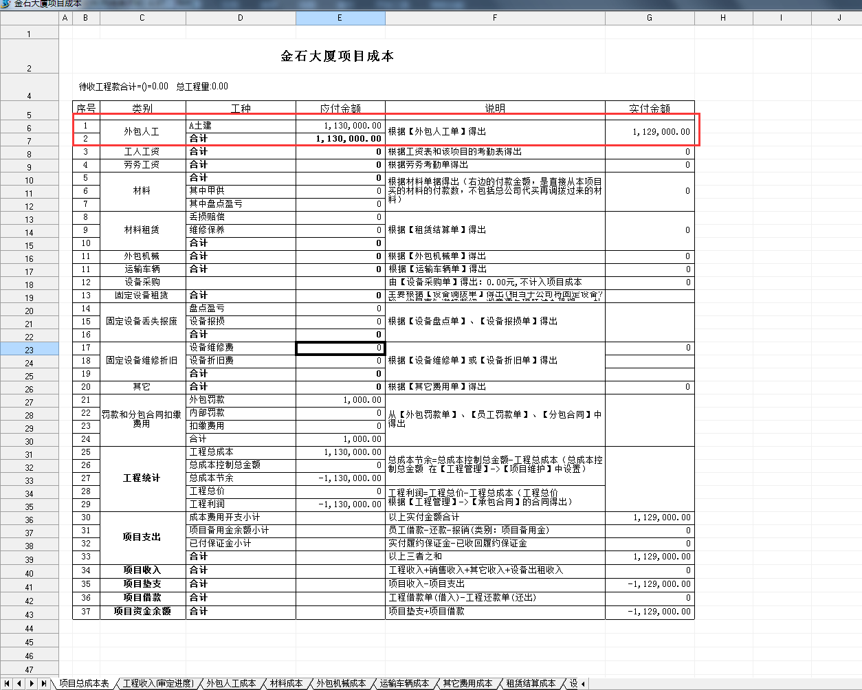工程項目分包成本是根據外包人工單中項目名稱自動匯總統計到該項目。