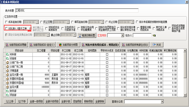 點擊系統(tǒng)的“工程管理”-“工程成本利潤對比”: