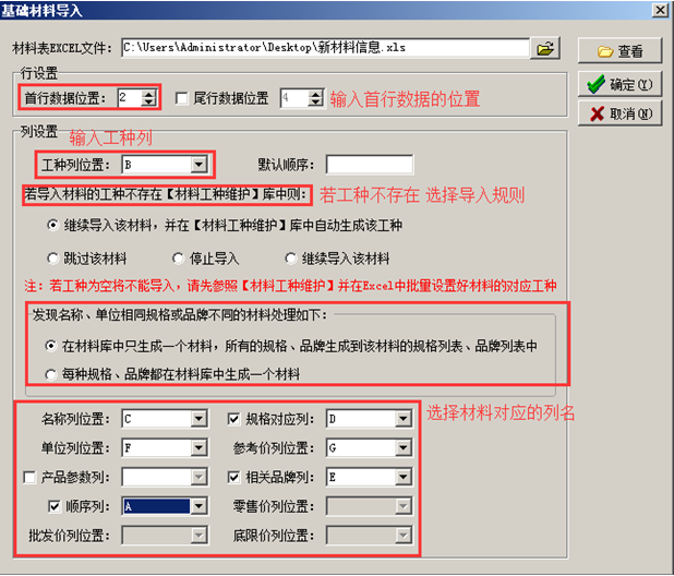 一般在建賬初期,基礎信息比較多,需要將基礎信息錄入到系統中的話工作量比較大。可利用批量導入的功能將基礎信息導入到系統中。首先需要講基礎信息整理到Excel表格中,方便導入。以材料信息的導入為例,其他信息的導入可參照。