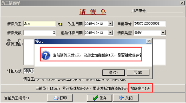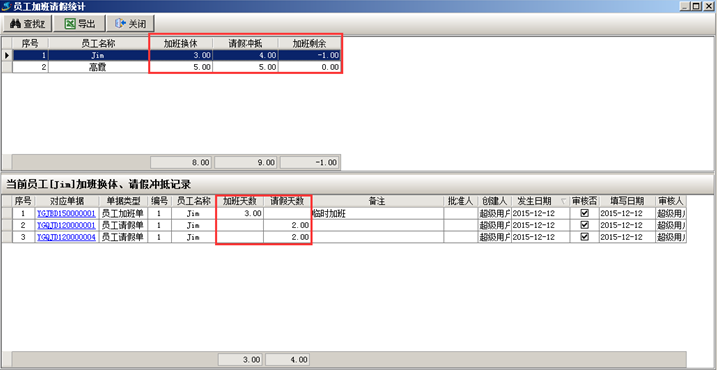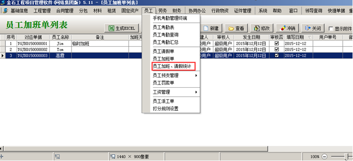 工程管理軟件中員工請假添加員工加班單,如圖: