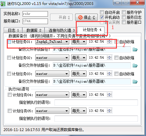 2、自動(dòng)備份:選擇計(jì)劃任務(wù)→添加備份的數(shù)據(jù)庫(kù)和日期