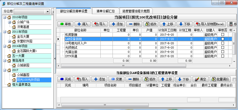 在【項目維護】中點“添加”對建立的項目按部位進行分解