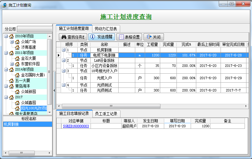 4、工程項目管理軟件施工計劃進度查詢