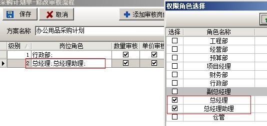 平級審核在設(shè)置方案時(shí)前面的級別必須相同,后面的審核權(quán)限必須為平級,平級崗位,審核時(shí)無先后順序,但必須全部審核通過后,下一級崗位才能審核。如下圖,預(yù)算部與經(jīng)營是平級崗位,誰先審核都可以,但必須兩個(gè)崗位全部審核完后,總經(jīng)理才能審核。