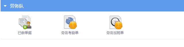 功能模塊:已生成單據歸攏、勞務考勤單、勞務加班單;