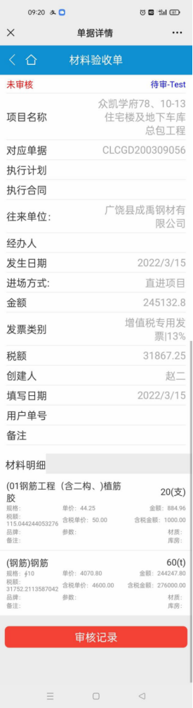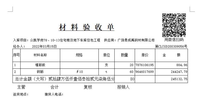 金石工程項目管理軟件新增單據掃二維碼查看功能