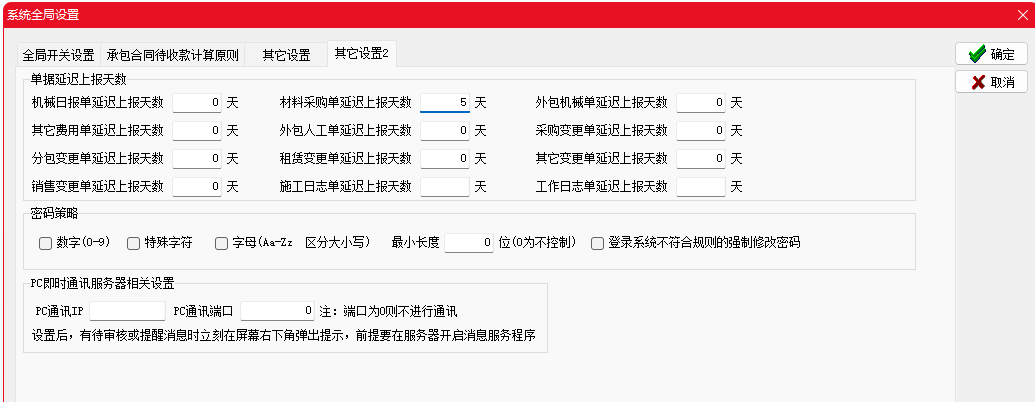 為了控制單據延遲上報時間,金石工程項目管理軟件專門開發了機械日報單、材料采購單、外包機械單、其它費用單、外包人工單、采購變更單、分包變更單、租賃變更單、其它變更單、銷售變更單等單據延遲上報天數設置。也就是企業可以自定義單據延遲上報天數,單據發生日期超出上報天數時不允許保存。
