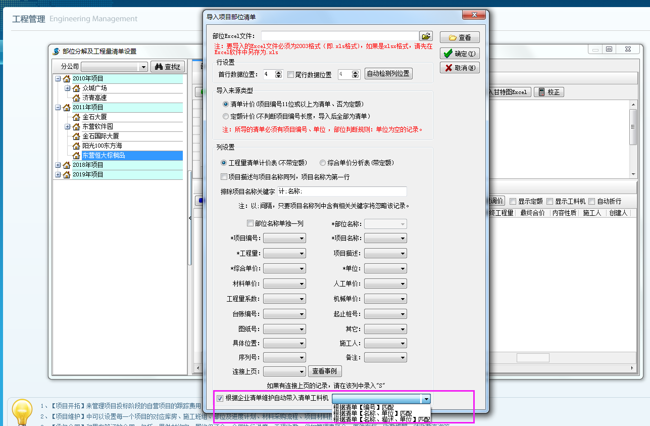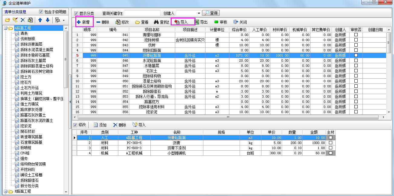 (2)、導入部分分解及工程量清單時工料機可以根據企業清單維護同步帶入。