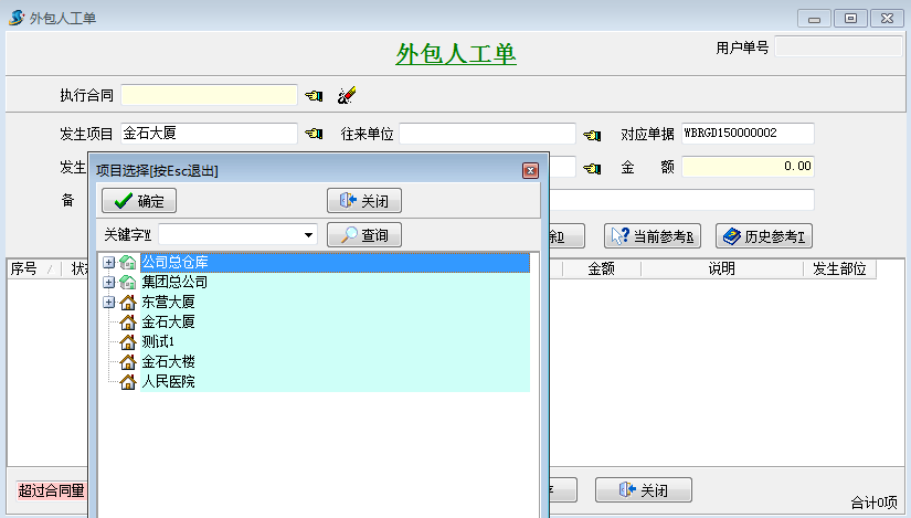 工程項(xiàng)目管理軟件設(shè)置項(xiàng)目隱藏后錄單據(jù)時(shí)不顯示隱藏項(xiàng)目,如下圖
