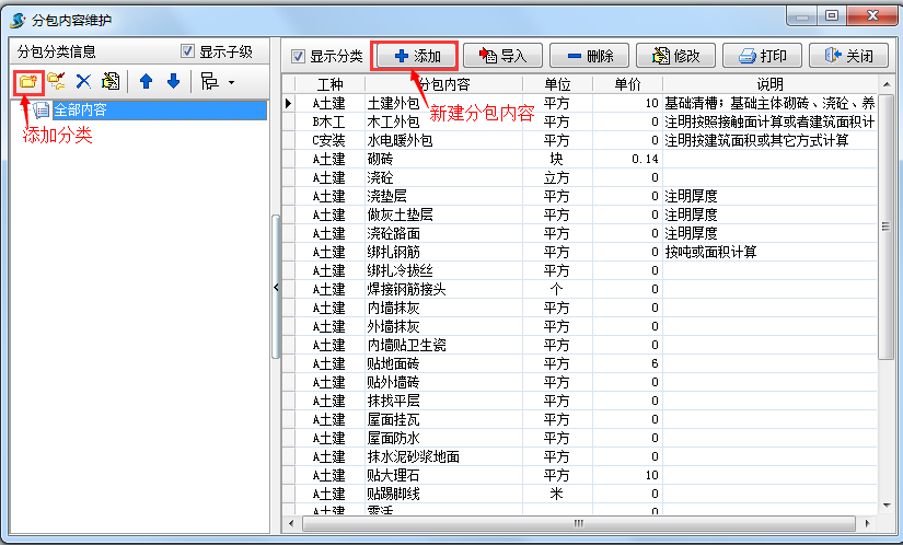 在做工程項目分包管理之前要做好往來單位維護(hù),人工工種維護(hù),分包內(nèi)容維護(hù),罰款分類維護(hù),分包預(yù)算單維護(hù)。1.往來單位維護(hù)
