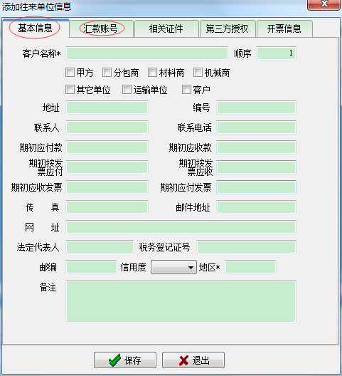 在工地項目管理系統(tǒng)左側(cè)選好分類,然后點新增新建往來單位,填好往來信息即可。(也可以對建好的往來單位進(jìn)行修改,刪除操作,其中帶*的為必填項)