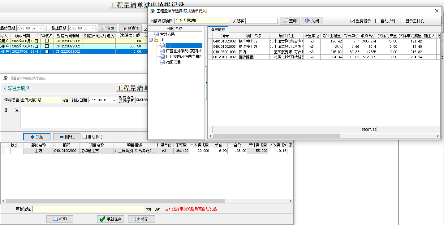 【工程量清單進(jìn)度填報(bào)】增加了[形象進(jìn)度金額]、[實(shí)際進(jìn)度金額]。如下圖
