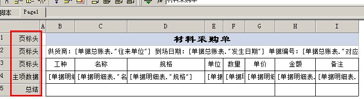 3)主項數據:用于整份報表連續打印的明細項數據,如果一頁打印不完,會自動打印到下一頁。
