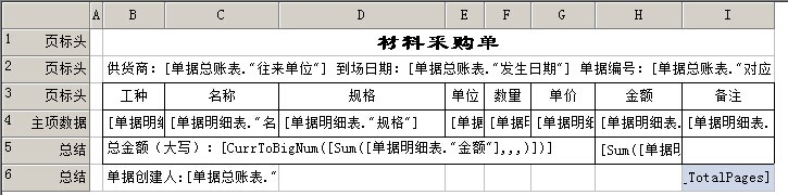 5)總結:用于整份報表最后一頁打印的內容,如果有主項數量,他會在最后一頁緊接著主項數據后打印。如果有頁注腳,會打印在頁注腳前。