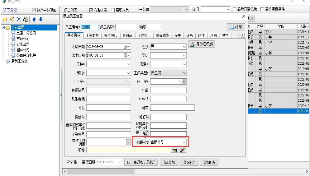 金石軟件升級——新增員工維護歸屬
