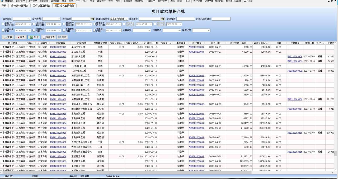 1、項目成本單據(jù)臺賬表金額類字段增加腳標匯總。
