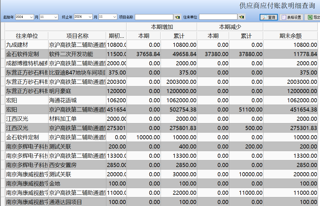 應(yīng)付賬款明細查詢:以項目名稱為基準(zhǔn),統(tǒng)計供應(yīng)商年度、月度應(yīng)付款情況