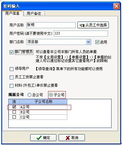 4、子公司用戶(可實(shí)現(xiàn) 項(xiàng)目授權(quán)、項(xiàng)目與項(xiàng)目之間的單據(jù)相互保密)