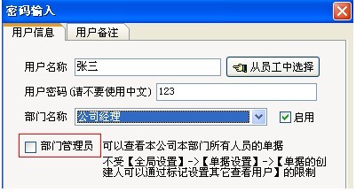 【部門管理員】可以查看本部門所有人員的單據(jù)、不受【單據(jù)的創(chuàng)建人可通過標(biāo)記來設(shè)置其它查看用戶】的限制。