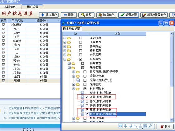 所以 張明 只能看到 A公司 所授權(quán)項(xiàng)目(眾成廣場(chǎng)、華都世紀(jì)城A區(qū))兩個(gè)項(xiàng)目、并且是項(xiàng)目部人員錄制的單據(jù)。