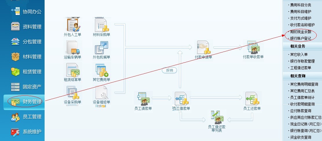 財(cái)務(wù)現(xiàn)金賬和銀行賬的的期初錄入,是在財(cái)務(wù)模塊中的期初現(xiàn)金余額、銀行賬戶(hù)登記來(lái)錄入。如下圖: