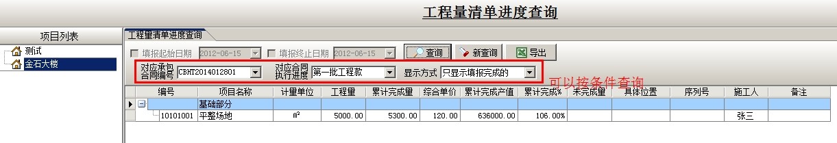 或是選擇相應的條件查看工程量清單進度