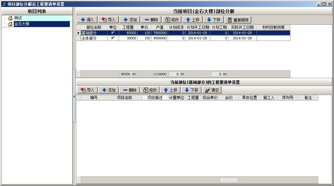 項目新建完成,下面對項目進行部位劃分,打開部位分解及工程量清單,根據本文開頭的表