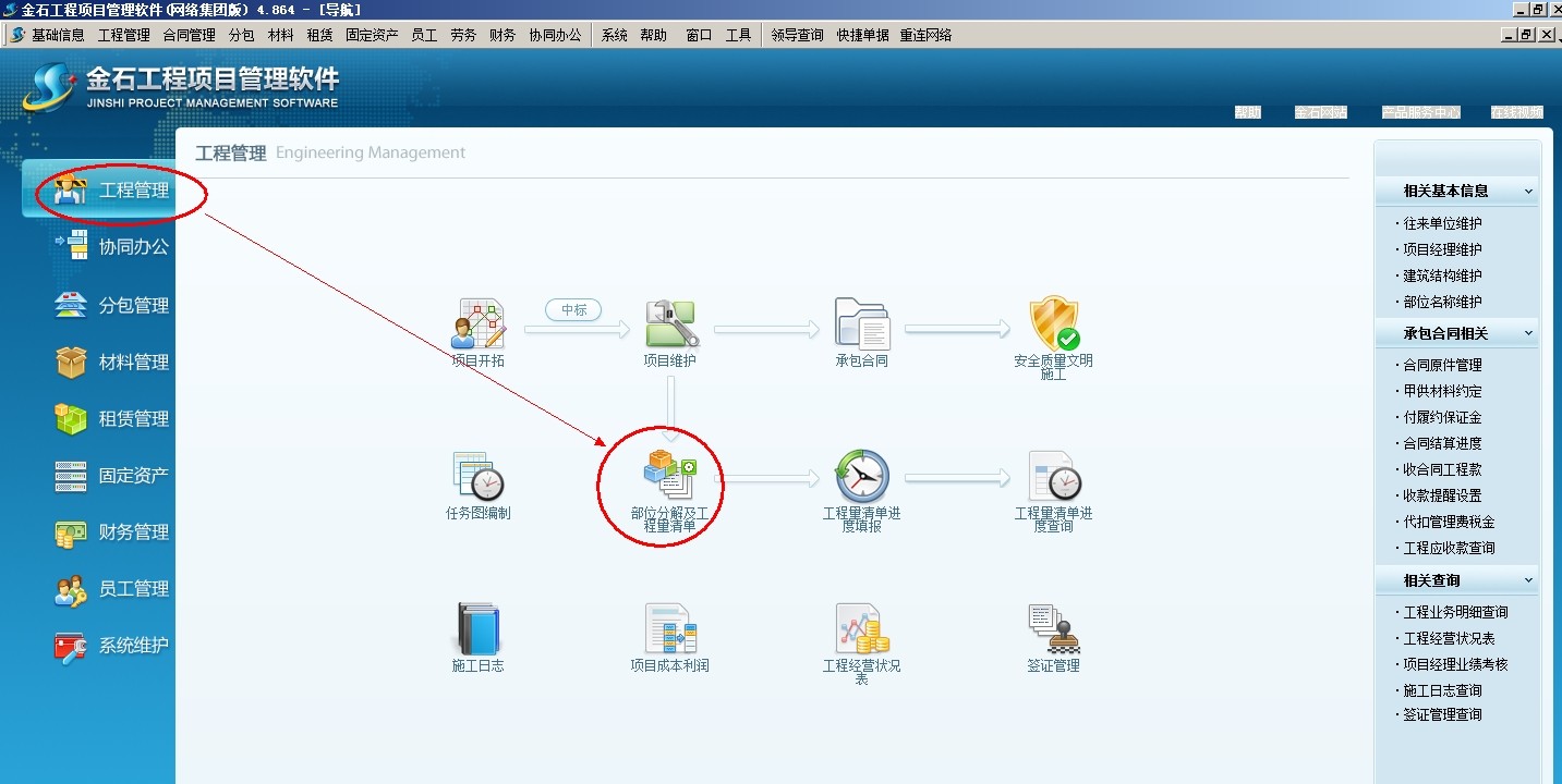 選中相應的項目,點擊新建,填出工程量進度填報窗口,選擇部位名稱,可以選擇關聯項目對應的承包合同號和承包合同執行進度,然后點添加,調入清單內容,在本次完成量處輸入已完成的工作量,不限制錄入進度填報,直至清單工作量完成,調入下一項清單內容(如某項清單實際工程量超過清單預算量,可以繼續填報)