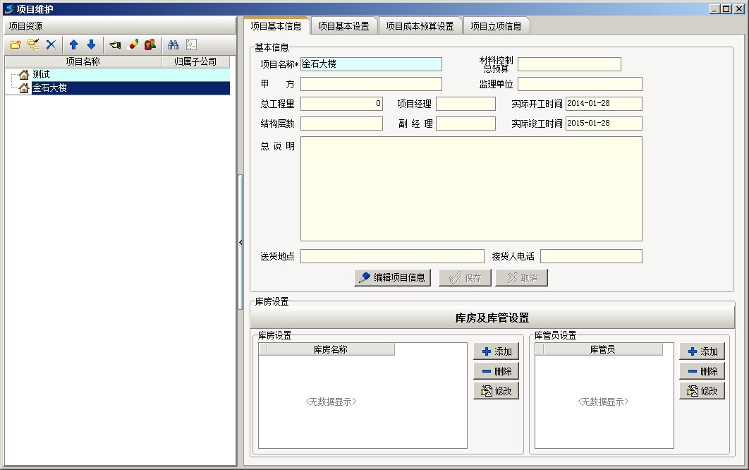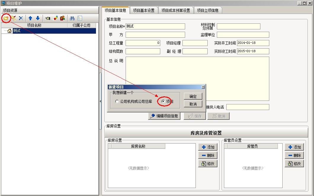 上圖是工地常用部位劃分的部分清單內容,下面以上面截圖為例說明軟件中工程的部位劃分,首先新建項目金石大樓